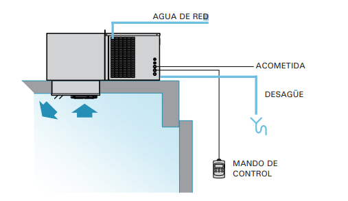 - Cajón de evaporación en panel sándwich de 50 mm de espuma de poliuretano, revestido interiormente con chapa de acero prelacado.